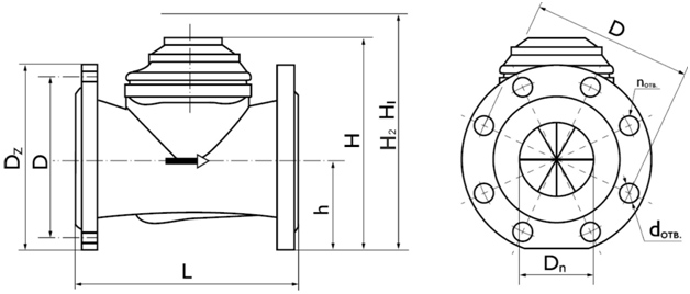 | DN | Dz | D | L | h | H* | H1* | H2* | n отв | d отв |